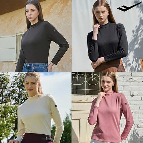 [투엘라] 여성 하이넥 기모 하프 집업티_러플 고밀도 투웨이 하이넥 카라넥 빅사이즈 골프 스포츠 긴팔 집업 티셔츠