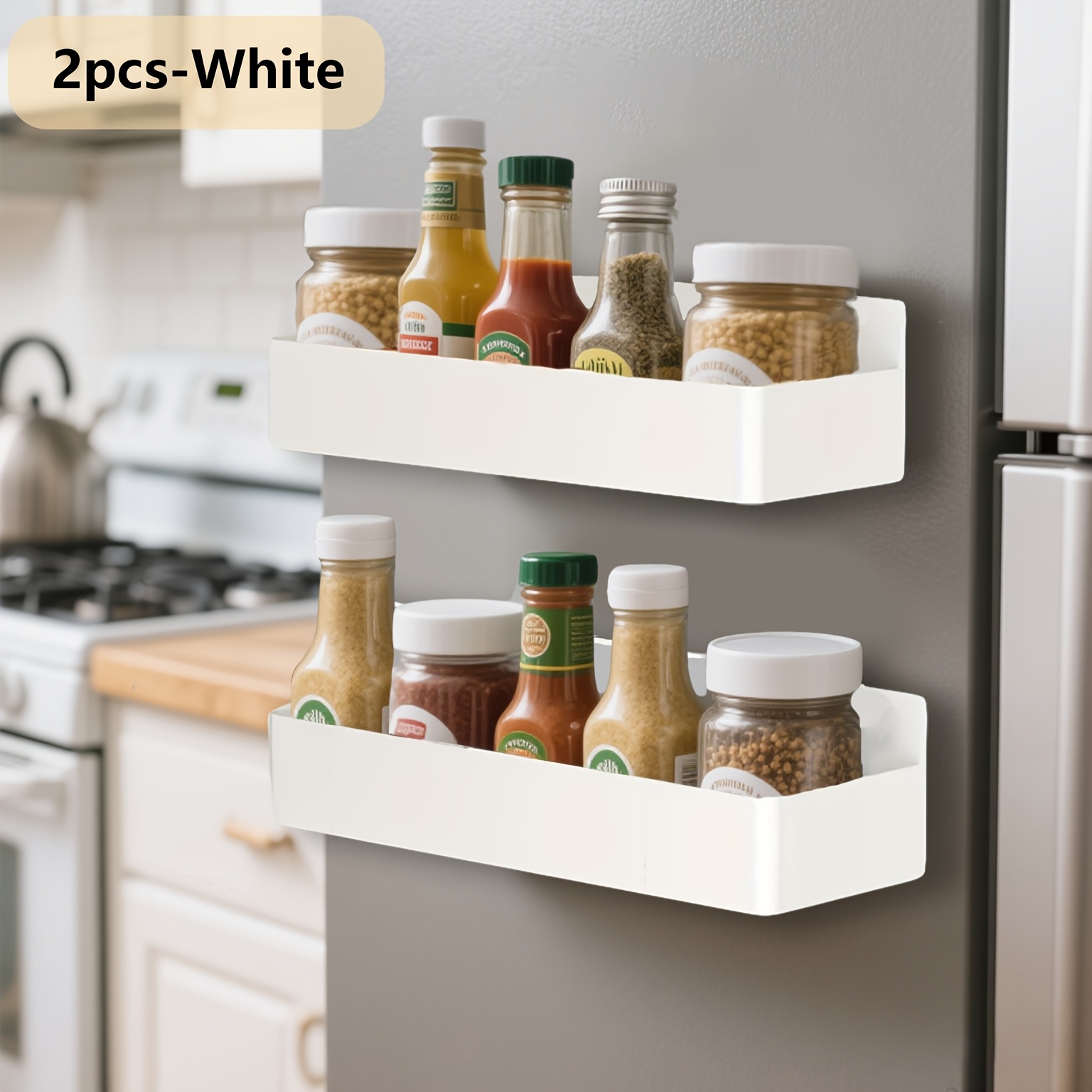 TEMU 2/4개 대형 자석식 플라스틱 수납바구니 - 냉장고, 전자레인지, 세탁기용 다목적 주방정리함, 마그네틱 사이드걸이 양념보관랙, 무타공 & 접착제 불필요, 탈부착가능한 선반