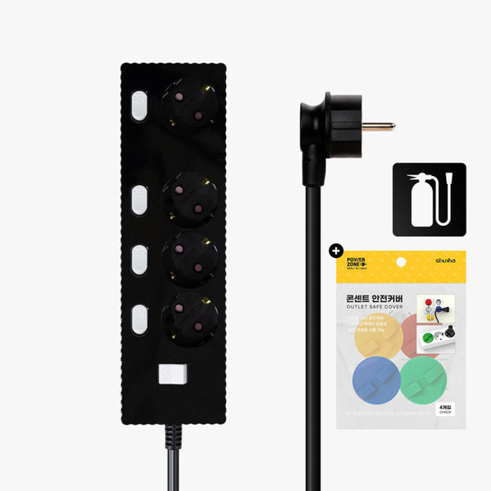 파워존 국산 프리미엄 자동소화 고용량 웨이브 개별스위치 멀티탭 4구 7m