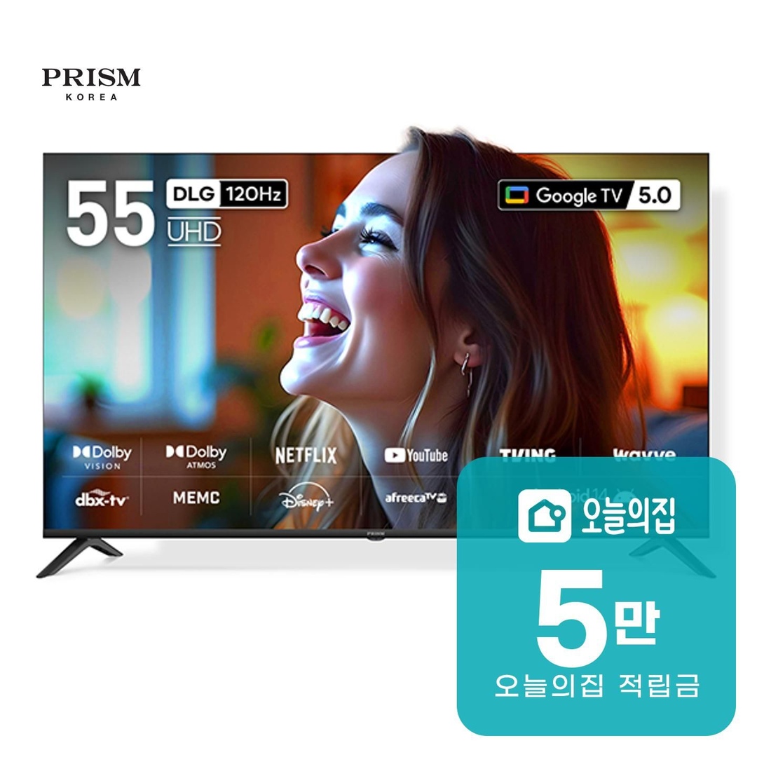 프리즘코리아 [25년형] 프리즘 55인치 국내최초 구글5.0 스마트TV DLG120Hz 패널 2년 무상 / CP55G5 (설치유형 선택가능)