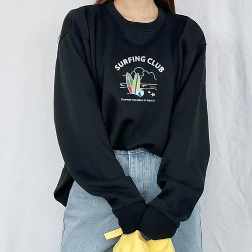 [험블][험블] 서핑클럽 프린팅 루즈핏 라운드넥 여성기모맨투맨 (7660706A)