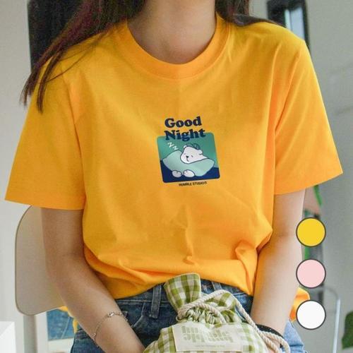 [험블][험블] 굿나잇베어 캐릭터 프린팅 라운드넥 데일리 반팔티 (6231822A)