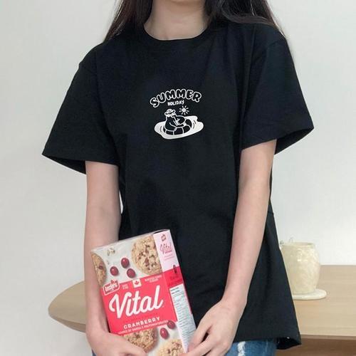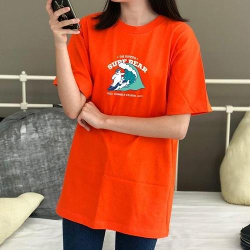 [험블][험블] 서퍼 라운드넥 여자 프린팅 여름 반팔티 (6228906A)