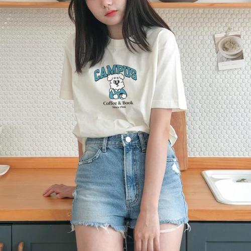 [험블][험블] 여성 면 티셔츠 루즈핏 프린팅 반팔티 (9828802A)