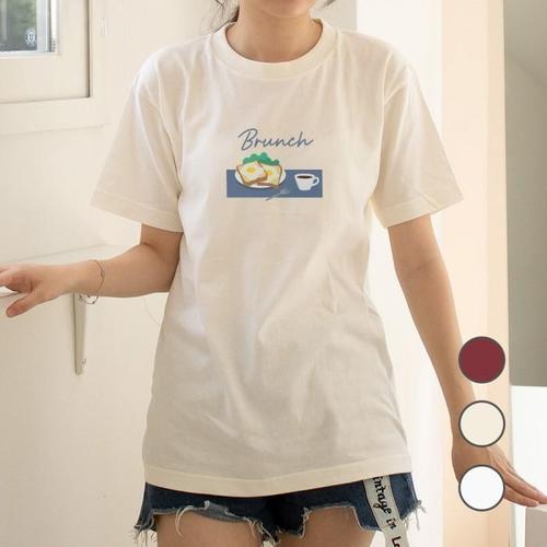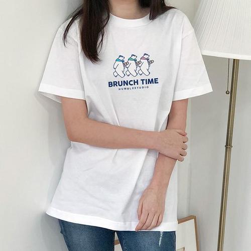 [험블][험블] 브런치 일러스트 프린팅 루즈핏 라운드넥 반팔티 (6429902A)