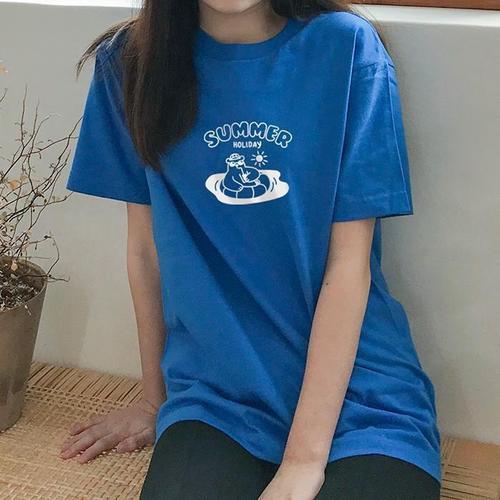 [험블][험블] 프린팅 여자 박스티 여름 롱 반팔티 (9652975A)