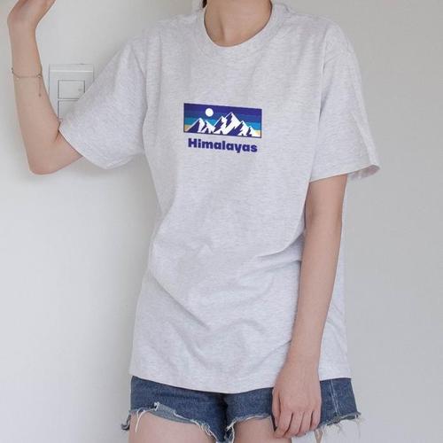 [험블][험블] 마운틴 프린팅 라운드 남녀공용 레이어드 반팔티 (8015545A)