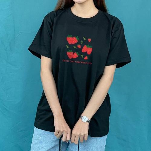 [험블][험블] 스트로베리 프린팅 라운드 루즈핏 여성 여름 반팔티 (8015509A)