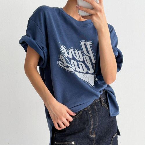 [옷자락]여자 봄여름 반팔티 슬릿 루즈핏 프린팅 라운드 티셔츠