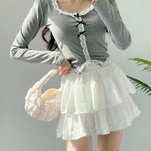 [옷자락]여성 벚꽃무드 발레스타일 캉캉 프릴 레이스 미니스커트