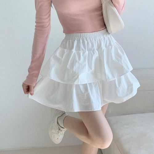 [다잇템]여자 2단 페미닌 프릴 잔주름 미니스커트 (16918508A)