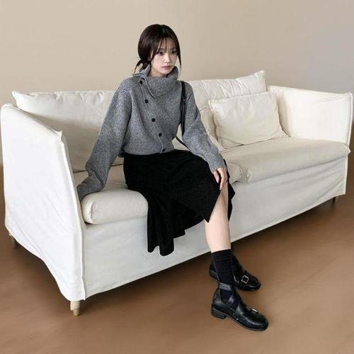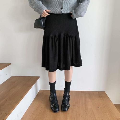 [르샵] 원 포인트 프릴 슬릿 니트 롱 스커트 (BPBSK004A)