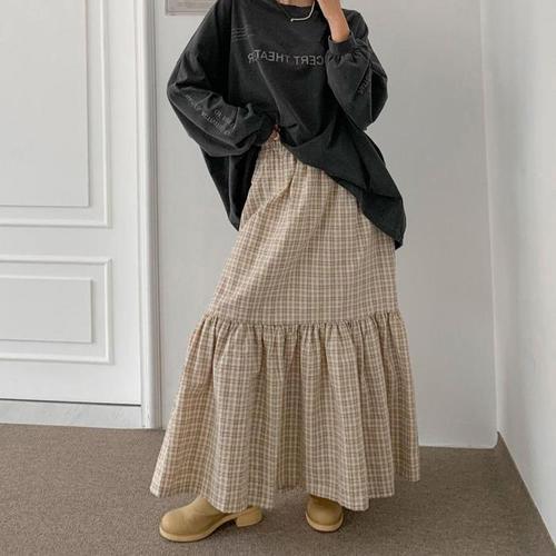 [다잇템]여자 가을코디 귀여운 프릴 티어드 롱스커트 (18885770A)