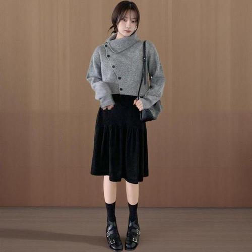 banhany 베이라 허리밴딩 벨벳 프릴 롱 스커트