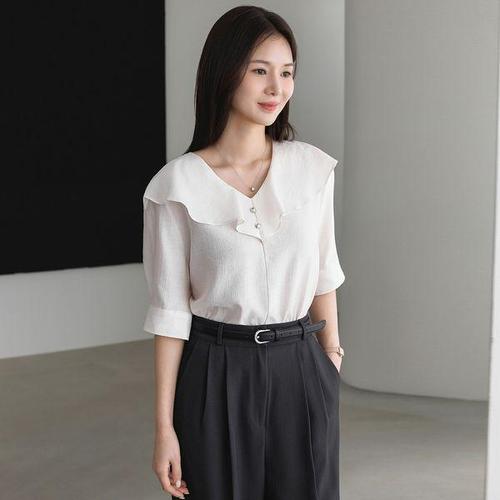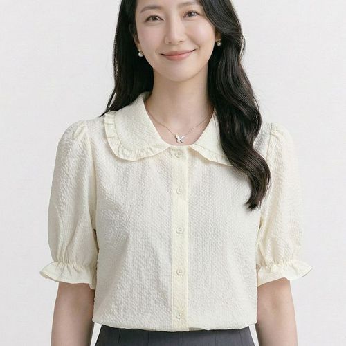 [SBD] 여름 블라우스 1P 자수 셔츠 단추 반팔 프릴카라 여성