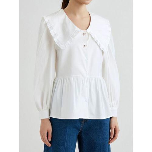 떳다그녀 로랑스 프릴 카라 셔링 루즈핏 셔츠 브이넥 코튼 오버핏 봄 데일리룩 하객룩 커프스 블라우스