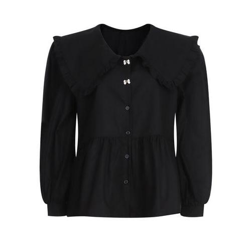 [샵앤]여성 루즈핏 피터팬 카라 리본 프릴 블라우스 EGG-WBL-20775-블랙