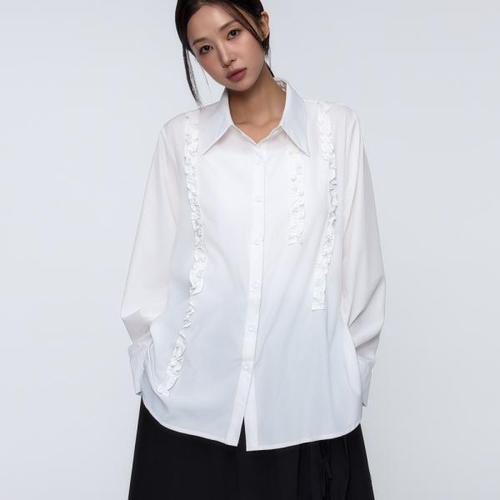 [보니스팍스(여성의류)]펀칭 레이스 카라 프릴 블라우스 셔츠 (XP2SH023M0)
