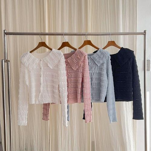 여성 프릴 카라 니트 가디건 캐주얼 숏 카디건