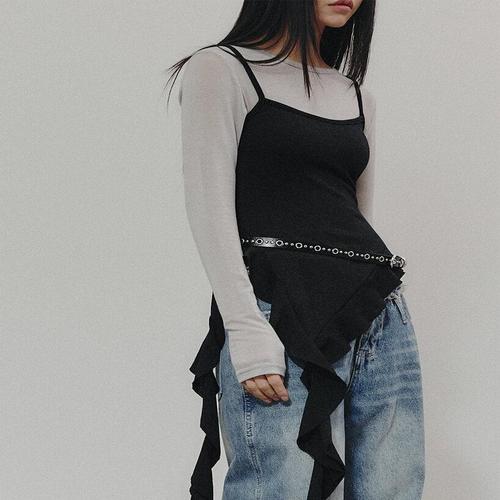 [시크블랙]로비에 도트 프릴 뷔스티에 레이어드 티 set