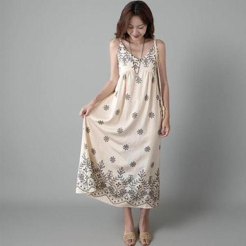 [셀러허브_여성트랜드패션]ONM 플라워 밴딩 여성 끈나시 여름 롱 원피스 드레스