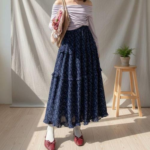 A라인 플라워 롱 스커트 꽃무늬 치마봄 여름 쉬폰