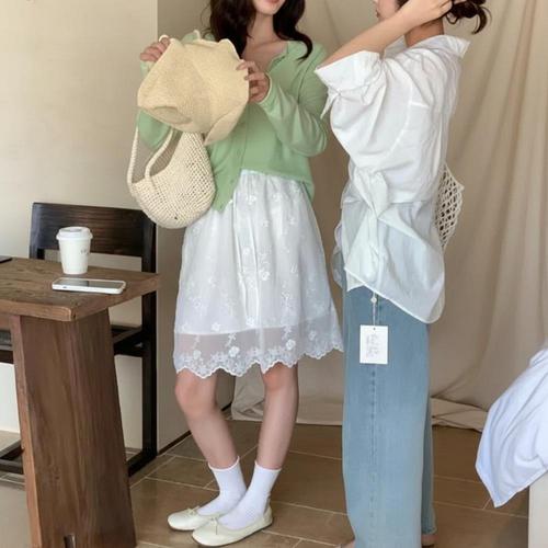[옷자락]여성용 데일리 플라워 자수 레이스 밴딩 미니스커트