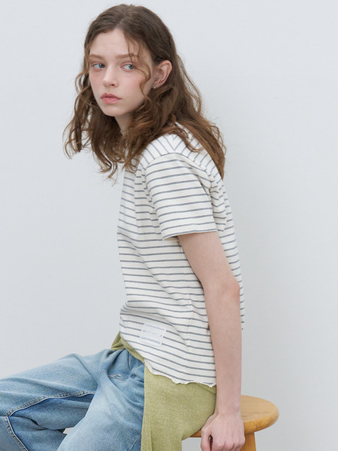 [노운베러] 립 웨이브 스트라이프 티셔츠_아이보리
