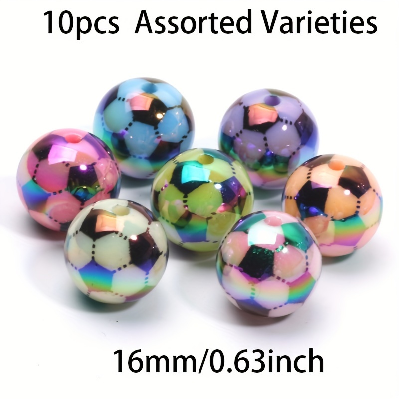 TEMU 16mm 10개 혼합 컬러 축구공 AB 아크릴 패션 팔찌 장식 비즈, 패션 액세서리, DIY 공예, 스타일리시 팔찌, 플레이풀 디자인, 매끄러운 마감, 고품질 비즈, 축구 테마 비즈, 공예 용품, 선물 쇼핑, 패션 애호가