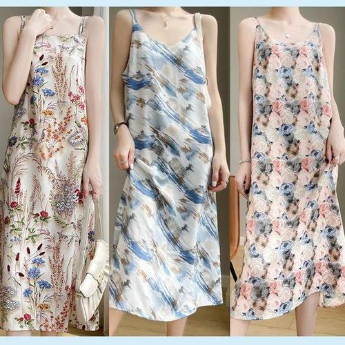 [에이치플러스몰]여성 플로럴 쉬폰 나시 롱 원피스 휴양지 여름 여행