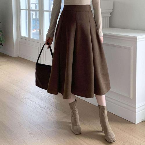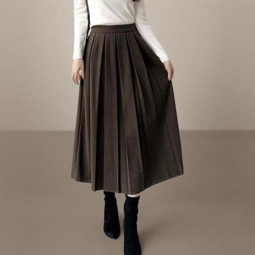 [신상오픈런]여성 가을 스타일 플리츠 뒷밴딩 비스코스 롱스커트