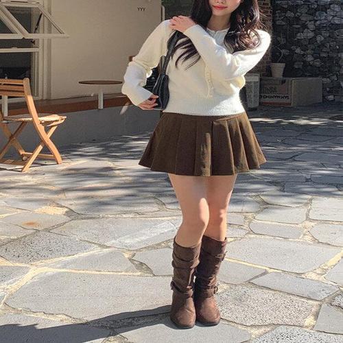 [모어렌][모어렌] [MADE] 블로니 니트 플리츠 미니 스커트 [tsk0676]