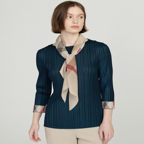 [D-PLEATS][스카프 세트] 베이지 빅 체크 긴팔 플리츠 티셔츠 (DLTS5BP22I2)