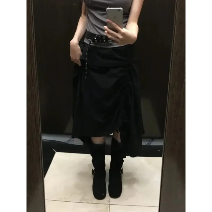 2025년 가을 신상 여성 벨벳 효과 플리츠 미디 스커트 (벨트 포함) 캐주얼 스탠다드 핏 유럽 스타일 패션