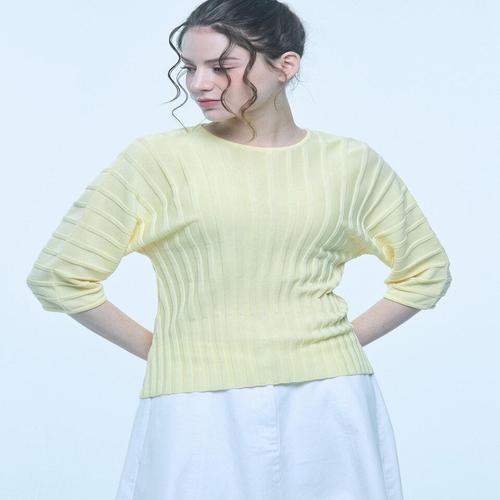 [유닛]실크 블렌디드 플리츠 크루넥 풀오버 (UFKKCN11CN-L/YELLOW)