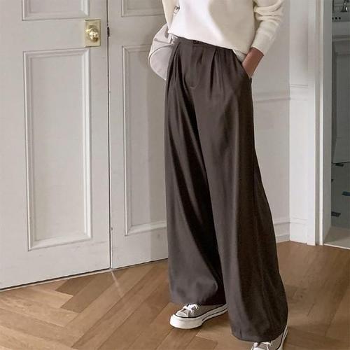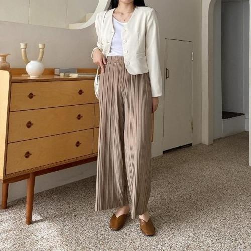 [신상오픈런]|CHP74A3|브우오 스프링 플리츠 바지 핀턱 밴딩 여성 넓은 와이드팬츠_18172660_597559
