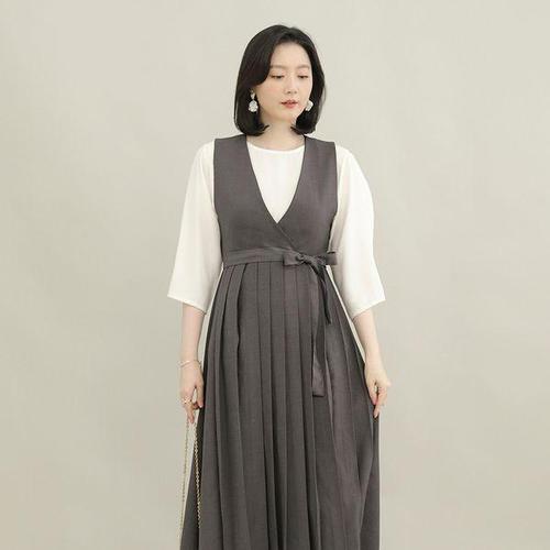 [옷자락]여자 뷔스티에 맞주름 플리츠 하이웨이스트 원피스