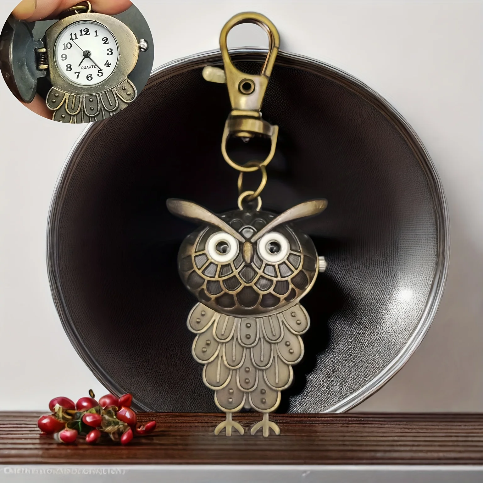 플립 스타일 복고풍 귀족 올빼미 키 체인 시계 교수형 시계 쿼츠 시계 시계 남성과 여성의 배낭 키 체인