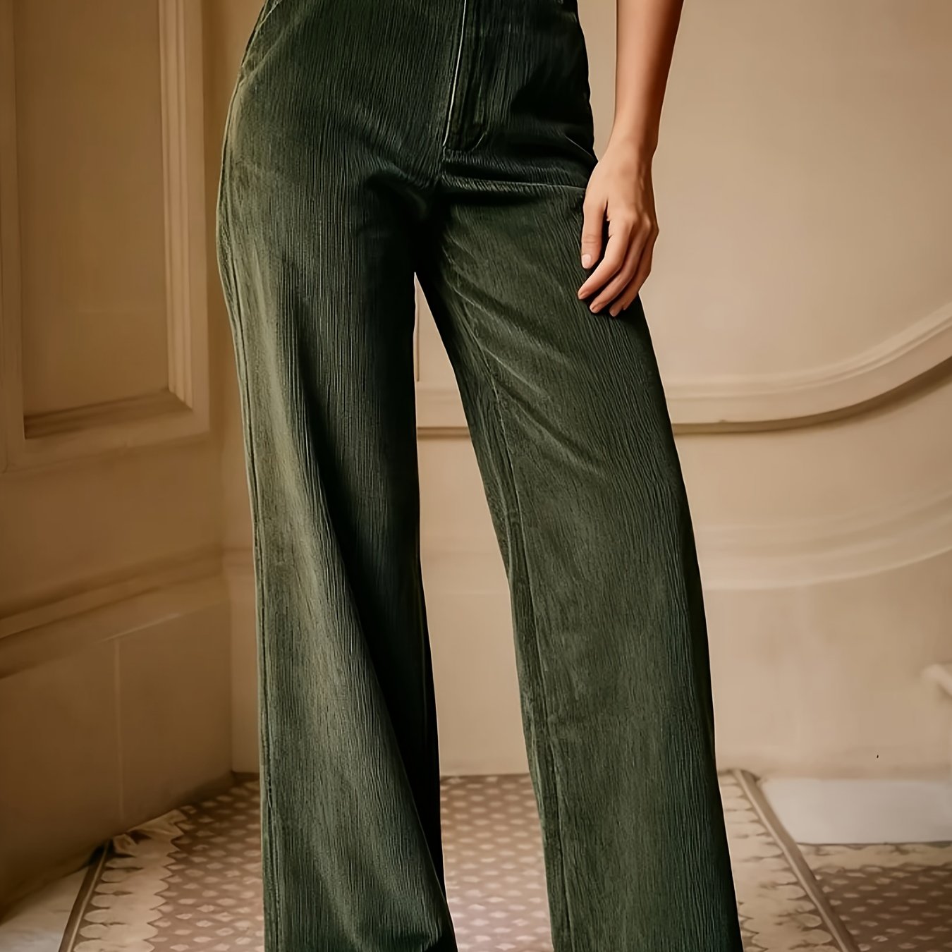 TEMU 여성용 우아한 레그 코듀로이 풀 레그 팬츠 - 솔리드 컬러 (캐주얼 & 스마트캐주얼 착용에 적합) - 벨트리스 디자인, 지퍼 클로저, 포켓 - 봄/가을용 세탁기 가능 레그 트라우저
