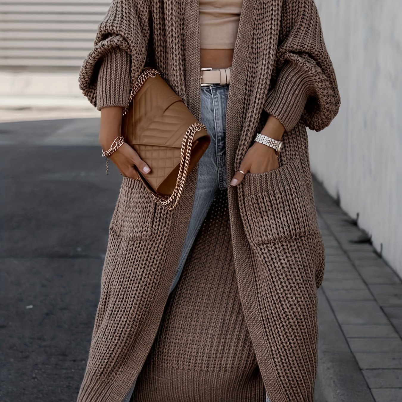 TEMU 여성용 Y2K 가디건 - 포켓이 있는 롱 플로우 오픈 프론트 스웨터, 캐주얼 & 포멀 룩을 위한 사계절 레이어링 피스, 솔리드 컬러 벨트 없는 디자인, 다재다능한 아웃핏 추가, 내구성 있는 니트웨어, 부드러운 질감|가디건