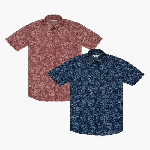[피에르가르뎅]배색 플라워 프린트 노멀핏 반팔 셔츠 PPWS26211_KG