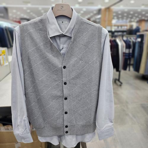 [피에르가르뎅](모다인천점)그레이 자가드 브이넥 오픈 베스트/PQKV3306A_IC