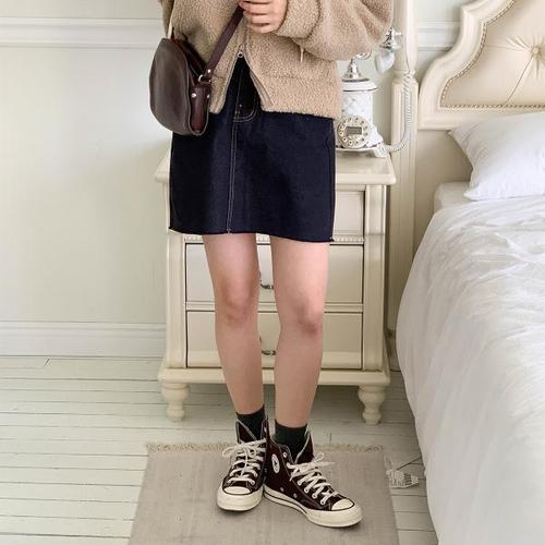 [린다샵]루어마 컷팅 생지 데님 미니 스커트