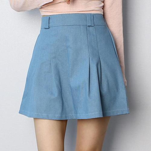BLEO 여성 봄 여름 a라인 생지 데님 데일리 미니 스커트