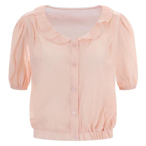 [샵앤][샵앤] 프릴넥 라운드 여성 퍼프소매 반팔 블라우스 EAN-WBL-11977-피치