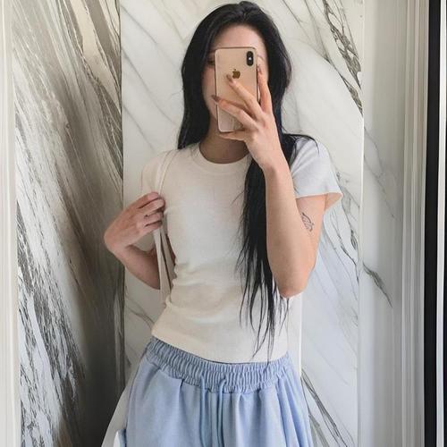 여자 크롭 피치기모 심플 베이직 반팔