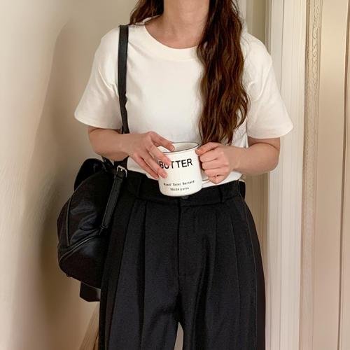 [옷자락] 여자 크롭 피치기모 심플 베이직 반팔
