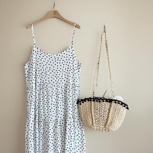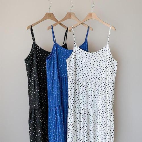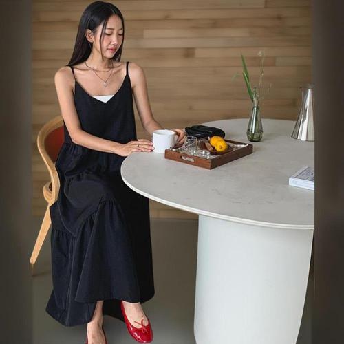 [옷자락]여성 여름 핀턱 캉캉 셔링 어깨끈 롱 원피스
