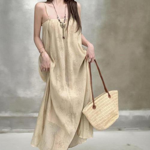 |CMO5692|여성 여름 핀턱 캉캉 셔링 스트랩 롱 드레스