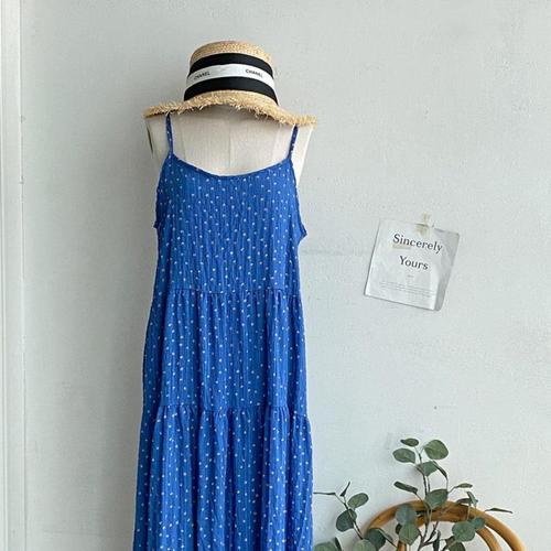 |CMO5692|여성 여름 핀턱 캉캉 셔링 어깨끈 롱 드레스